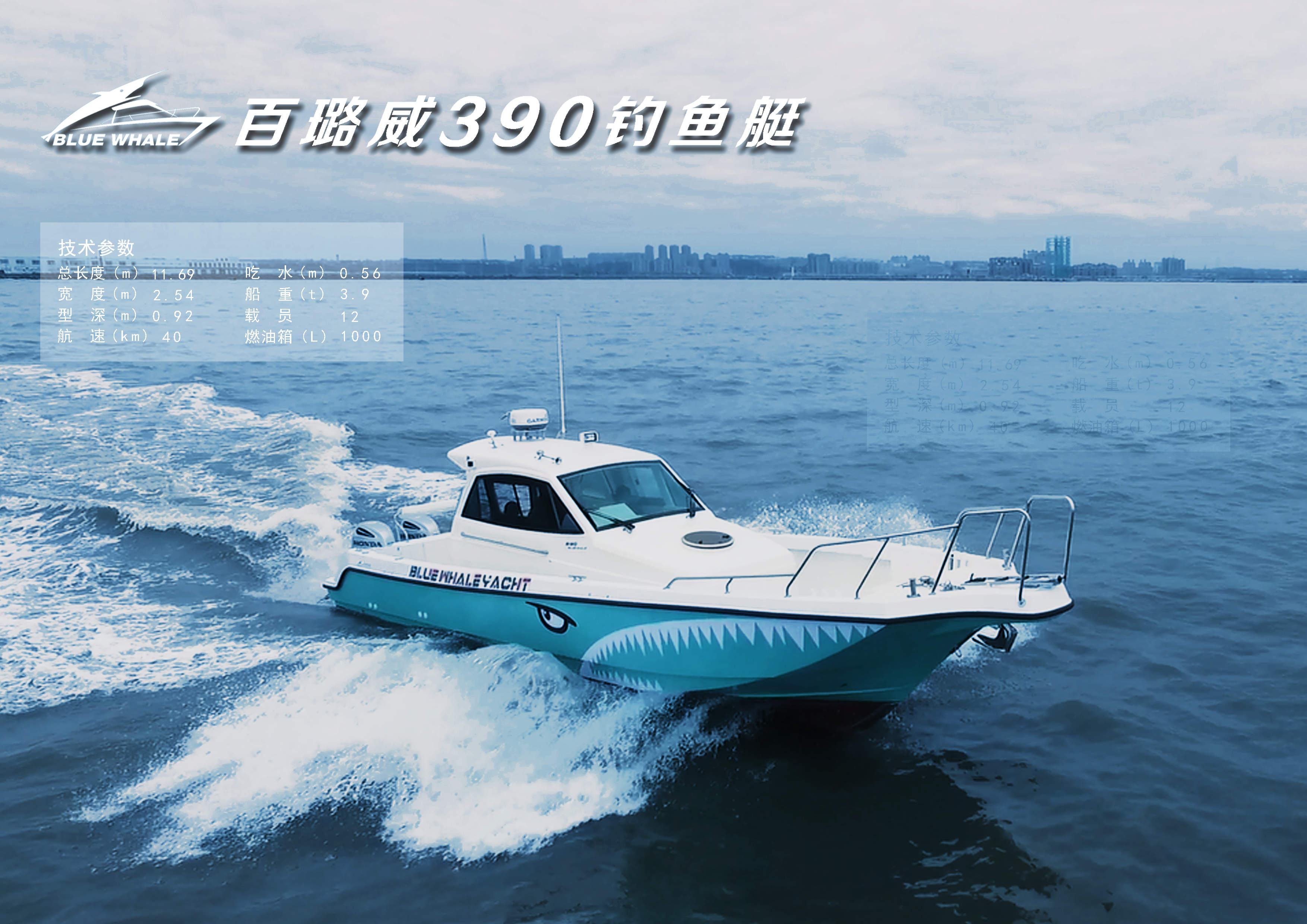 390钓鱼艇是在百璐威370钓鱼艇基础上进行技术修正、研发推出的一款更适合中远程海钓、海况的高速钓鱼艇。