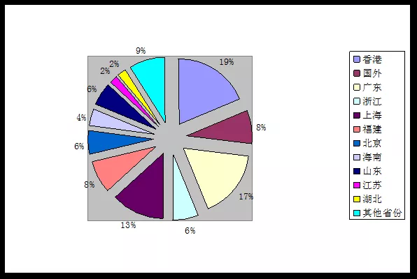 图一:参展商所属行业及对展会的印象 图二:参展商地区分布 从省份上来看,本次参展商主要有来自香港、上海、广东、山东、海南、浙江、台湾地区等;而国外的参展商,主要有来自澳大利亚、美国、英国等的游艇制造商、代理商及相关配件商。 二、观众统计分析 本次展会有11000人到现场参观,专业观众近4000人,其中海外观众500人, VIP嘉宾达3000多人。其中有芬兰参观团,澳大利亚参观团,香港及澳门参观团等。