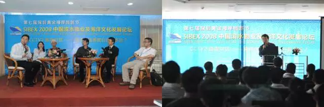 ● SIBEX 2008 航海大讲堂 跟着他们的脚步,“全球通——新浪号”勇士东庆、珠海钓鱼协会海钓分会会长林伟、“老船长”魏军、PADI专长教练余晟铭,让你在繁忙之余一次性体验驾航、海钓、冲浪、潜水的无限乐趣,与他们近距离接触、交流,感受他们不一样的人生,现场听他们讲述与海为伴的故事。引起了现场观众的热烈反响,真正的亲密接触海洋生活,引领并推广海洋生活概念。