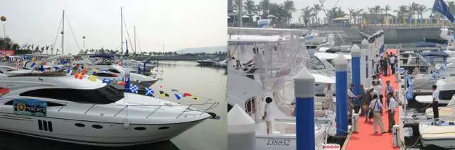 陆上规模:品牌游艇云集 游艇制造及船艇代理商有澳大利亚Shoreline、美国ChrisCraft、珐伊Fareas、欧帝亚舸、巴富仕Bahrfuss以及中国制造堪与国际知名品牌媲美的金海湾Kingbay、海星Heysea、太阳鸟Sunbird、阿尔法Alpha、星瑞Sease、星诺Aquastar、威海竹内、三江、黑豹、鑫和、浩强等;游艇生产配件有船用通讯导航、GMDSS系统设备、安全救生设备,各类岸用/海事电子通讯导航系统;还有法拉利名车、世纪海景·果岭海地产等高档消费品。