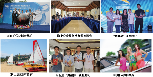 今年展会期间举办了一系列精彩纷呈的海洋生活体验和交流活动:SIBEX2014开幕式、海上安全服务链专题座谈会、SIBEX2014金帆奖颁奖典礼、“游艇丽人”摄影大赛、水上运动体验营以及“海星杯”第五届中国大学生游艇设计大赛颁奖典礼等。