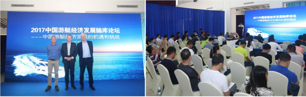 『丰富多彩的同期活动』 ◆ 2017中国游艇经济发展脑库论坛 10月27日,来自英国、法国、荷兰的国际嘉宾与国内行业专家、媒体、船东等代表一同参与了“2017中国游艇经济发展脑库论坛”。在介绍国际游艇经济发展经验之后,与会者就中国游艇经济当前发展的机遇和挑战畅谈心得体会,发表各自的看法与主张,献计献策,提出了具有前瞻性的解决方案。