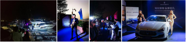 ◆ 璀璨的“海洋派对之夜” 今年展会的时间延长至夜间,每晚都举办不同特色的晚宴活动,不仅有组委会主办的金帆奖颁奖典礼、海之魅晚宴、航海人之夜,还有各大展商主办的活动,如莫阿娜游艇&芭黎之花香槟派对、欧尼尔答谢酒会、玛莎拉蒂电音派对等,游艇文化氛围浓重。
