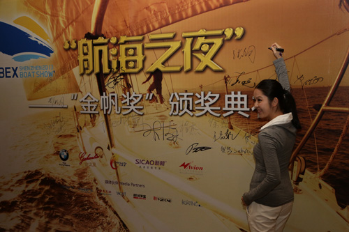 航海英雄翟墨获得“游艇行业风云人物”。今年的8月3日,翟墨驾驶帆船进入钓鱼岛10海里,在抵达钓鱼岛3海里处向海中撒下了100面红旗。