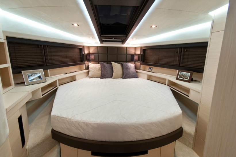 本次卡帝尔为满足亚洲客户需求,特意VIP豪华定制,将船首房间改为娱乐间,并特别增加KTV功能。在同级别游艇中,420 Fly宽敞的空间和巧妙的布局以及精致的内饰堪称一绝。
