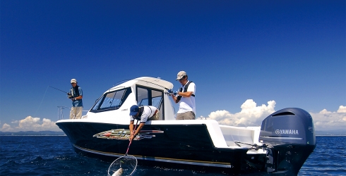 配备了强劲马力的YF系列巅峰产品--YF-310。平稳地推下节流阀,一口气加速到滑翔姿态,让人感受到前所未有的舒畅感。在被朝阳映红宛如镜面般的海面上,安静,且强有力的四冲程引擎声音和波动仿生推进板将水面分割开的愉悦声音形成了漫长的白色轨迹并一直延续下去。漂流钓鱼时在低速区的强韧扭矩与向钓 鱼点移动时的速度性能无一不让人鼓舞雀跃。 钓鱼者所憧憬的,属于自己的钓鱼人生,将从这艘游艇开始起航。照片中船体颜色与船外机为日本式样与中国式样有所不同。