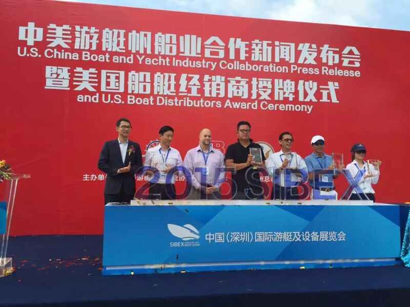 2015年10月22日下午,在第九届中国(深圳)国际游艇展开幕期间在大鹏新区七星湾游艇会圆满举行了“中美游艇帆船业合作新闻发布会暨美国船艇经销商授牌仪式”。随着游艇消费需求的进一步扩大,中美两国游艇行业携手合作,共谋发展。