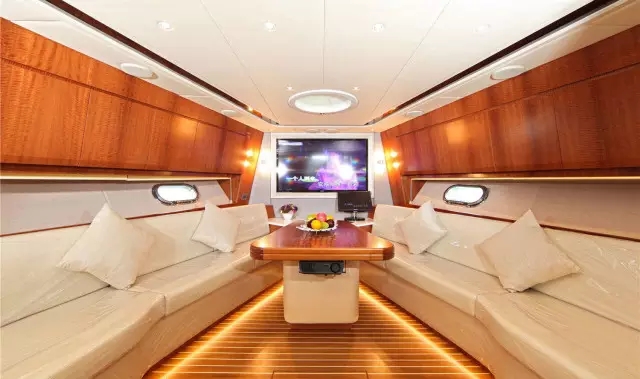 毅宏希仕德徕63尺豪华游艇是毅宏集团首推商务型豪华游艇,宽敞气派,雍容夺目的奢华内装,足可容纳20-30人登艇的63’Sea Stella,绝对成为主人最高规格的心意款待。 船体内配有吧台、酒柜、多功能电视桌的24平米超大C型沙龙。家具皆采用进口柚木和橡木,两侧舷窗下方处均巧妙的设计了零花的储物空间,左舷设有玻璃双开衣柜,空间运用极尽巧思。以其优雅简洁的线条、雍容气派的内饰、顶级无上的用料赢得财富新贵的青睐,目前已成为国内保有量第一的品牌游艇。